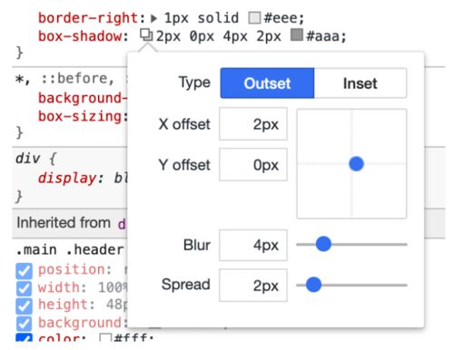 CSSでbox-shadowを指定するとき、いつも何番目のパラメータが何だったか思い出せなくなるのですが、chrome の開発者ツールを使えばUIで指定できました。 F12キーを押すなどしてChormeのDeveloperToolを表示(これはやらなくてもOK) 対象のオブジェクトを右ク…