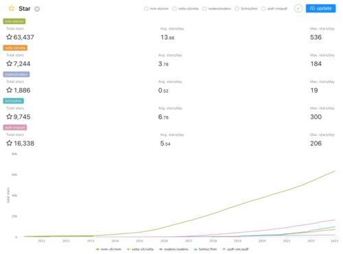 GitHub Starの数で比べてみた 何となくnodenvを使っていましたが、最近Voltaを使っている人も多いので調べてみました。GitHubのStarの数で比較してみようかと思って調べていたらところ、こちらのサイトを発見したので使わせていただきました。www.nebula-gra…